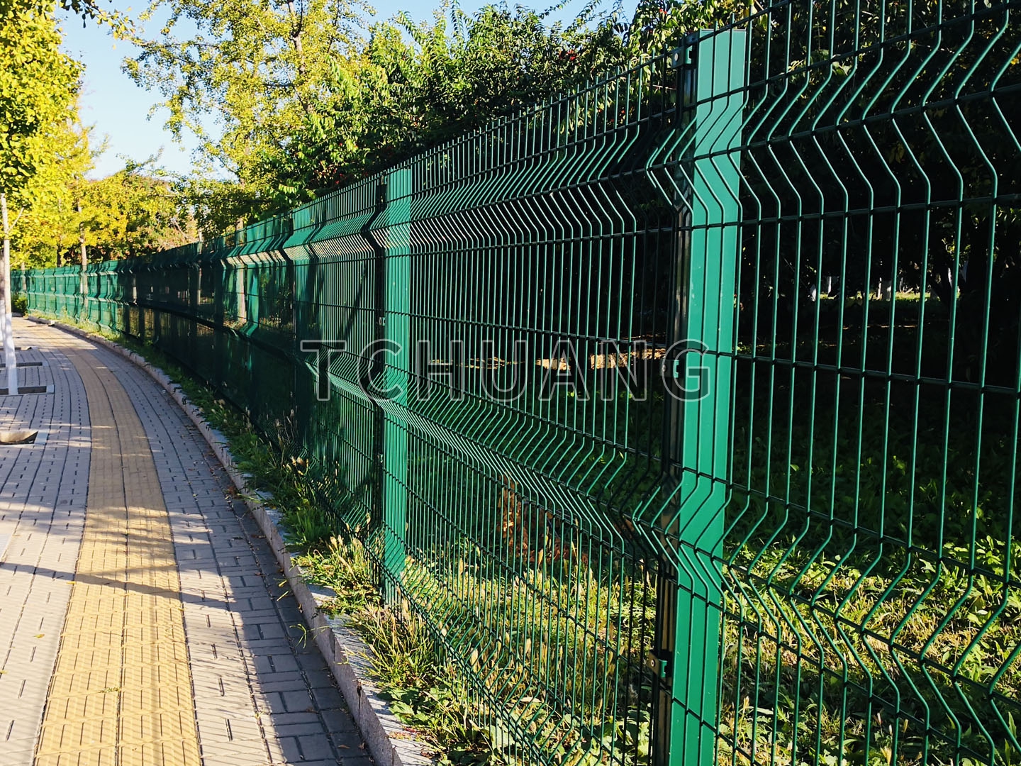 · 单丝网片由低碳高镀锌丝焊接而成,再采用高精度液压设备压制三角形折弯增加网片强度;